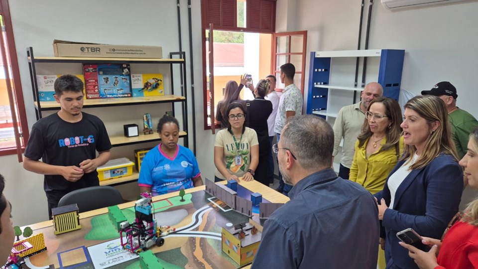 Outro momento de grande interesse foi a visita ao time de robótica do CEET, que demonstrou protótipos, soluções desenvolvidas em competições e iniciativas voltadas para a popularização da ciência e da tecnologia entre os estudantes da região. A troca de experiências evidenciou como projetos desse tipo colaboram para despertar vocações, fortalecer competências socioemocionais e aproximar os jovens das demandas da indústria 4.0.
